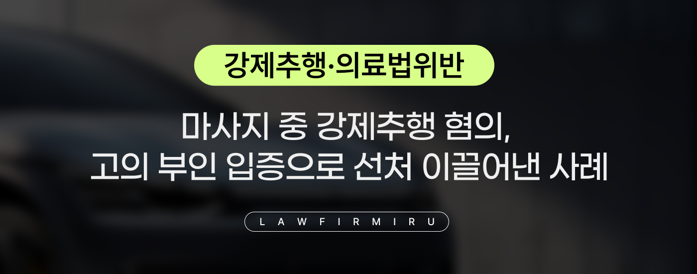 강제추행 사건은 의도와 행위의 해석에 따라 결과가 크게 달라질 수 있는 사건입니다. 특히 마사지업, 피부관리업 등 신체 접촉이 불가피한 업종에서는 사소한 오해도 형사사건으로 이어질 수 있습니다. 법무법인 이루는 이러한 사건에서 사실관계 분석과 정황 입증을 통해 최대한의 선처 결과를 이끌어낸 경험을 보유하고 있습니다. 강제추행·의료법위반 사건 관련 상담은 법무법인 이루와 함께 하시기 바랍니다. 전문 변호사의 신속하고 정확한 조력을 통해 최선의 결과를 도출하겠습니다. |
