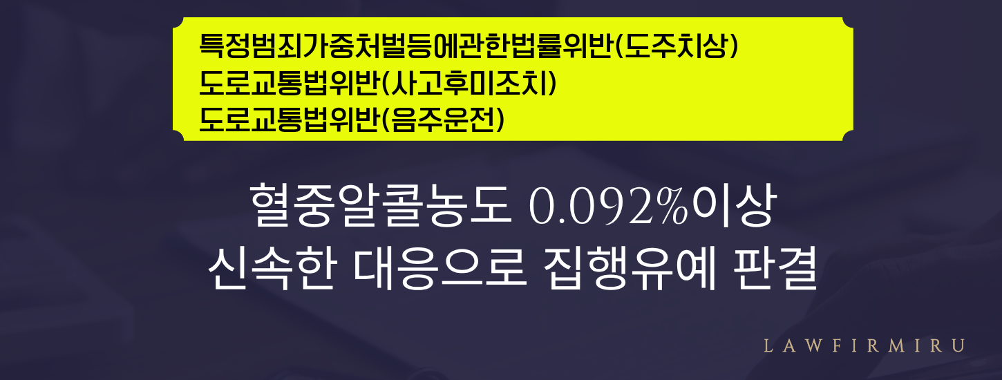 음주운전은 중대한 사회적 범죄입니다. 본 사건은 사고후 도주까지 한 상황이라서 실형을 피하기 어려운 상태였습니다 이에 더욱더 면밀하고 신속 정확한 대응이 절대적으로 필요한 사안 이였습니다.
